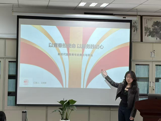 为深入学习贯彻习近平新时代中国特色社会主义思想,切实落实《中国共产主义青年团支部工作条例(试行)》相关要求,进一步加强团干部队伍建设,激发基层团组织活力,西北政法大学哲学与社会发展学院于4月9日下午在格物楼209举办了团干部讲团课院级选拔赛。学院党委副书记晁永红,团委书记慕婧,团总支书记武雯梅、李嘉昕应邀担任本次比赛评委。